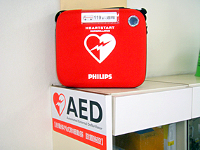 院内には緊急時に備えAED自動体外式徐細動器が設置されております。 |