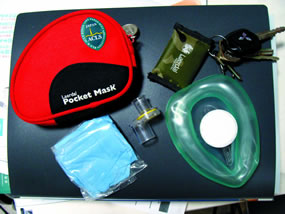緊急時に備えマスク、人工呼吸用エアバック等も常備しています。 |