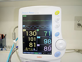 インプラント手術を行う場合は生体管理モニターを装着して行います。 |