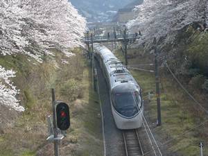 | ロマンスカー こちらは山北駅側です。小田急線ロマンスカーも何時しか山北町には停車しなくなり、谷峨駅で上下線が通過するようになりました。因みにこちらはJRのロマンスカーです。 |