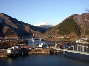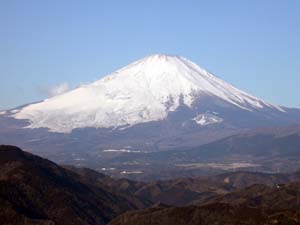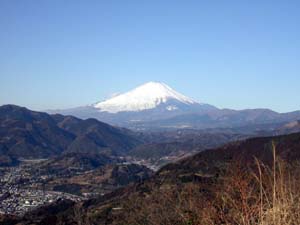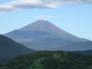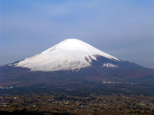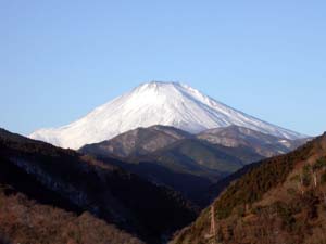 | 足柄の富士山 私の診療所は2つの低い山の手前側麓にあります。山北町はこの山を中心に周囲を取り囲むように栄えてきました。何十億年か昔足柄や丹沢が北西に移動したために富士山ができたことを知っている人は少ないと思います。 |