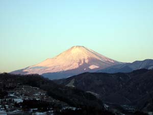 | 平成18年正月の富士山です。 周囲はまだ暗いですが、ほんの20分くらい朝焼けの富士山を見ることができます。 |
