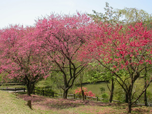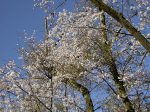 | 高松山の山桜は山中にあり、全望をお見せできないのが残念です。 通常のそめい吉野より花びらが薄く細かいです。 |