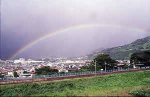 虹 6月の雨上がり自宅の屋上から虹が見えました。無人駅の希望の虹になればよいのですが。 |