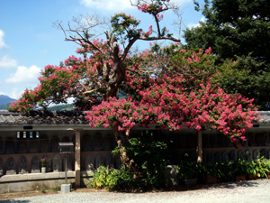 | 再び百日紅 「隣の芝生」よろしく近所のピンクや紫、白の百日紅がきれいに見えるので、散歩の帰りに撮影していますが、比べてみるとやっぱりこんなに幹の太い百日紅はありませんでした。 |