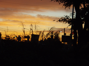 | 朝焼け 夕焼け空と薄とくればゲゲゲの鬼太郎の墓場のシーンを思い出してしまいます。が、実は朝焼けです。 |