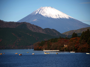 | 芦ノ湖 11月最後の日曜日に房総半島を撮影しようと試みましたが、見えなかったので、芦ノ湖から富士山を撮影してみました。幻想的な湖は市川昆監督の「犬神家の人々」にも使われたのではなかったでしょうか。しかし、アップにすれば釣り客のボートで溢れる庶民的な湖です。 |