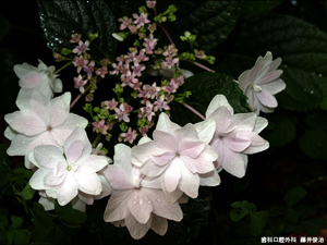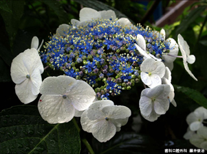 | 紫陽花 足柄上郡開成町の紫陽花農道一面に咲く紫陽花をお送りしようと試みたのですが、数が多すぎてきれいな写真はなかなか撮影できませんでした。 自宅に咲いた額紫陽花をお送りいたします。 装飾花と言って周辺の花びらだけが開きます。それがちょうど額縁のようなのでこのような名前が付いたといわれています。 額紫陽花は、葉も幹も紫陽花そっくりですが、厳密にいうと少しだけ種類が違います。どちらもユキノシタ科若しくはアジサイ科アジサイ属ではありますが、 ガクアジサイという原種の中の1つにアジサイという栽培種があります。いわゆる最も一般的に植え付けられている球状の紫陽花はセイヨウアジサイであり、 日本原産のガクアジサイを改良した品種だそうです。 万葉集時代の紫陽花の八重咲く如くやつ代にを いませわが背子見つつ思はむ(しのはむ)も平安時代の 「あぢさゐの 下葉にすだく蛍をば 四ひらの数の添ふかとぞ見る」(藤原定家) も歌っていたアジサイは総てガクアジサイで、丸く球状に花びらが茂るアジサイを知らずに歌っていた詩です。 |